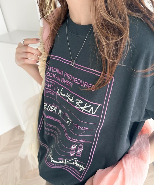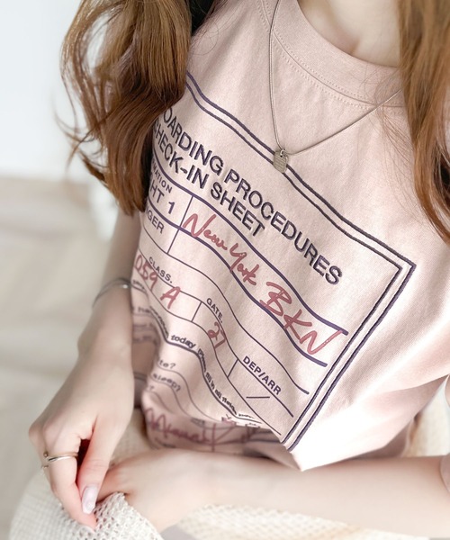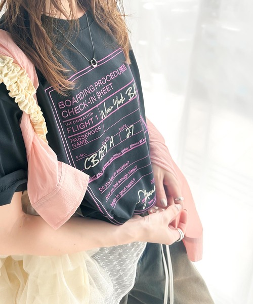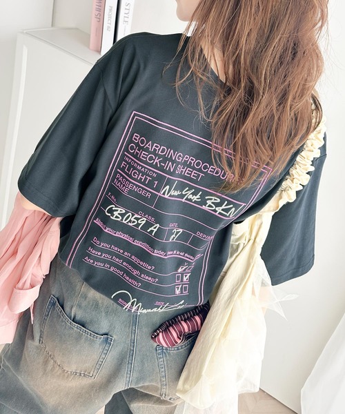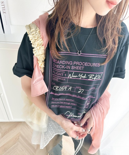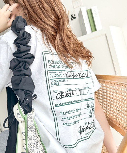 参考商品名:《Javaジャバコラボ》着回しを楽しめる。綿100%前後2wayフライトチェックインロゴ プリント 刺繍半袖Tシャツ