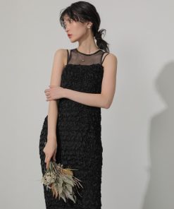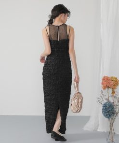 キーワード:ドレス タイト ドット ロング 七分袖 五分袖 エレガント オケージョン セクシー パーティー モード 結婚式二次会
