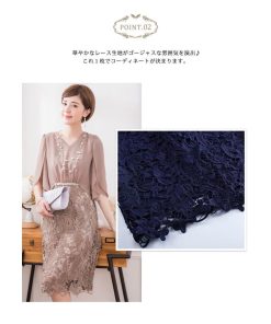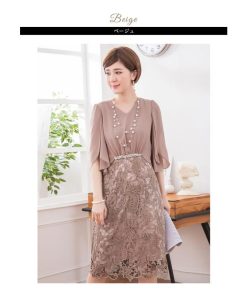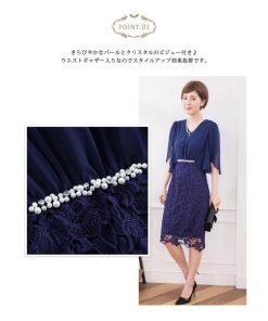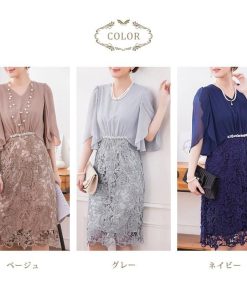 KOEISTORE パーティードレス レディース 結婚式 紺 ワンピース ひざ丈 パーティドレス レース ネイビー ベージュ グレー 大人 フォーマル お呼ばれ 20代 30代 送料無料