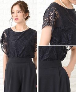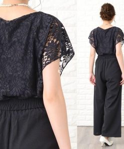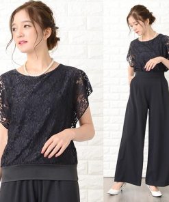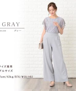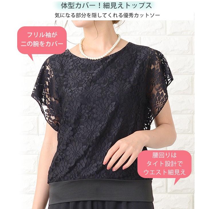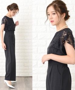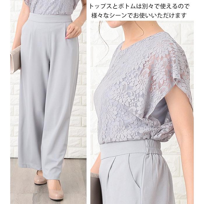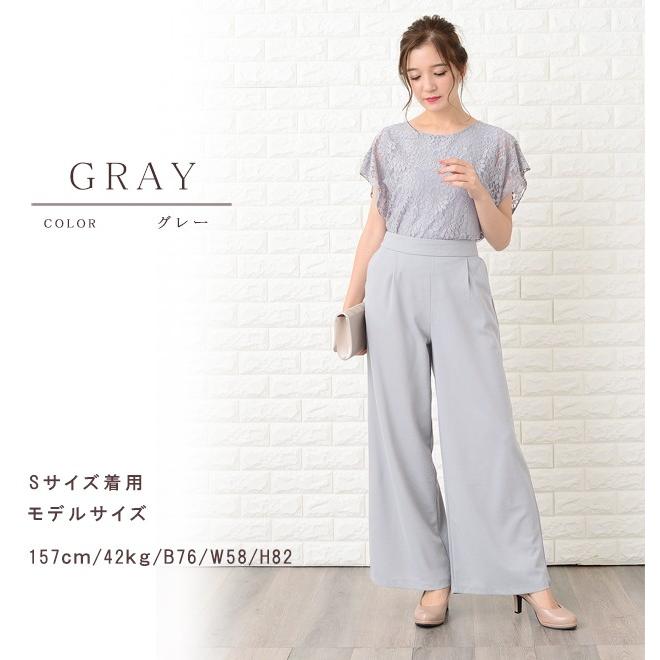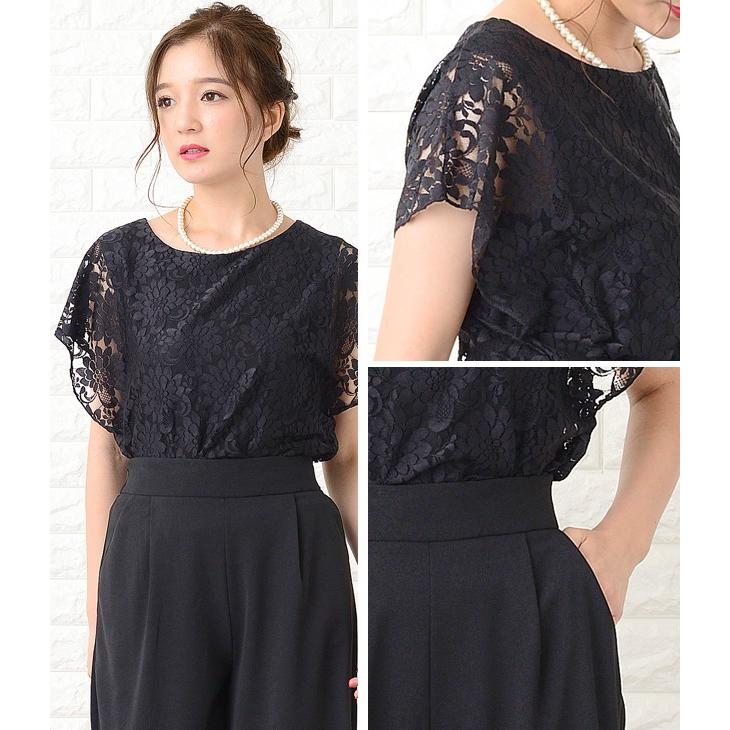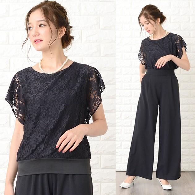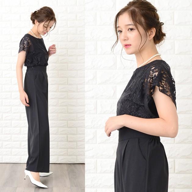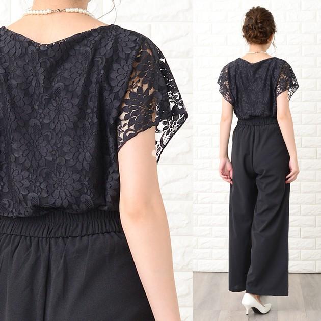 Lace Ladies パンツドレス パーティードレス セットアップ フリル袖 半袖 レディース 袖付き 袖あり 結婚式 二次会 お呼ばれ 披露宴 花柄