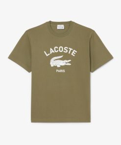 LACOSTE tシャツ ヘビーウェイト アーチネームカレッジロゴプリント 半袖Tシャツ メンズ レディース