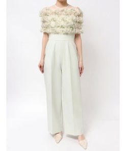 キーワード:パンツドレス ストレート ワイドパンツ ワンポイント 半袖 エレガント キレイめ フェミニン 夏 結婚式