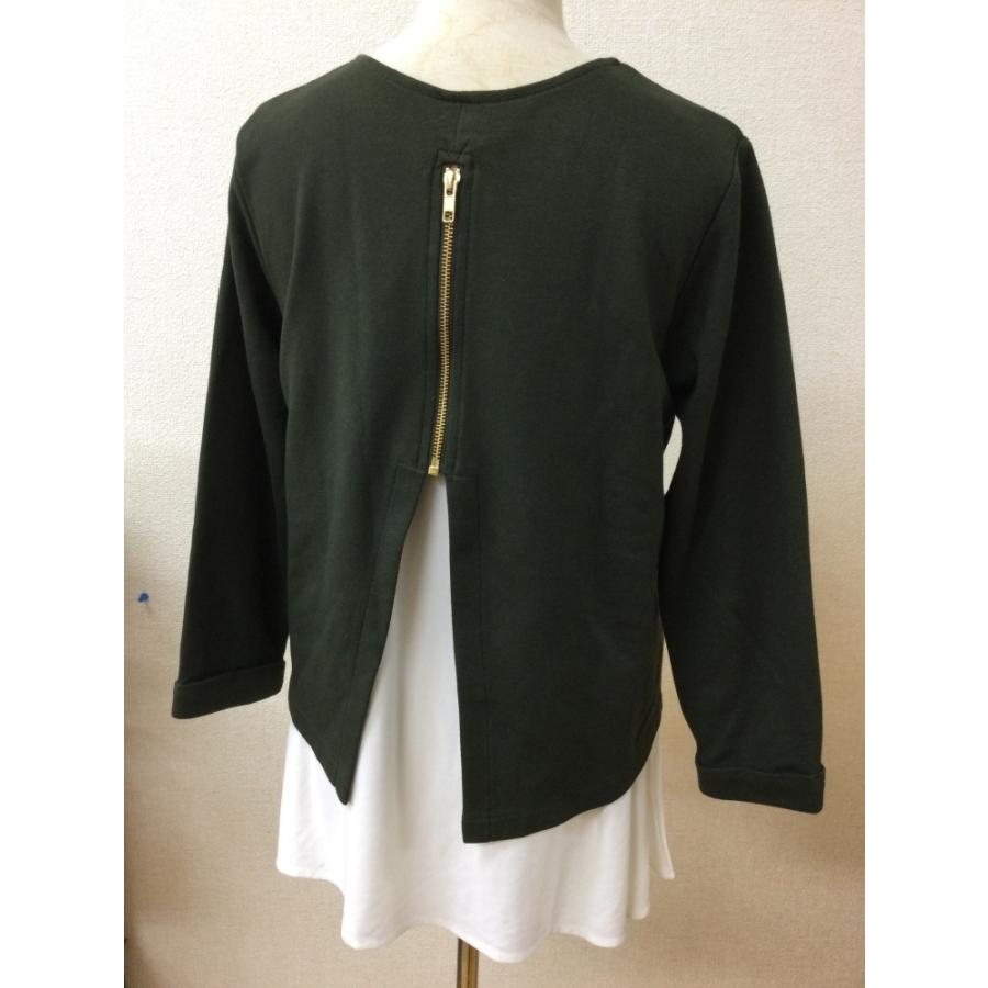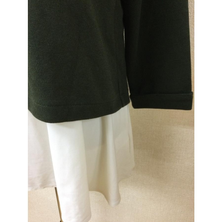 LEPSIM 濃いグリーンの重ね着風カットソー インナー側は白 サイズM