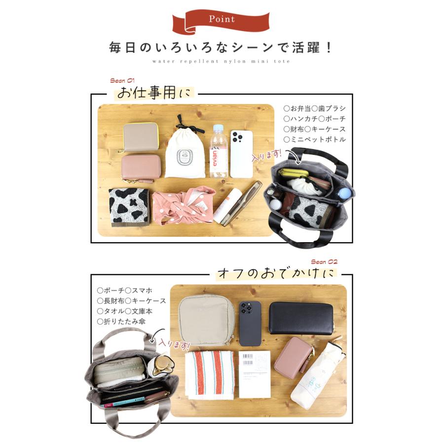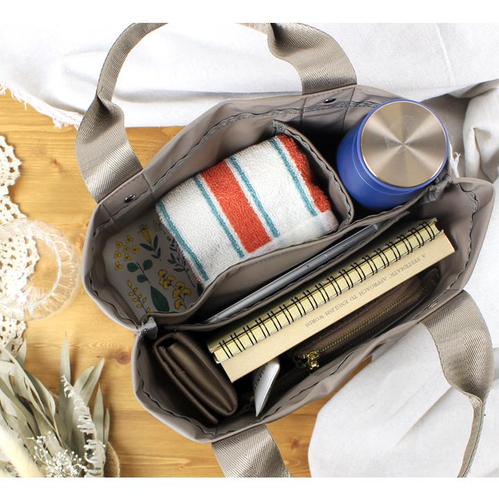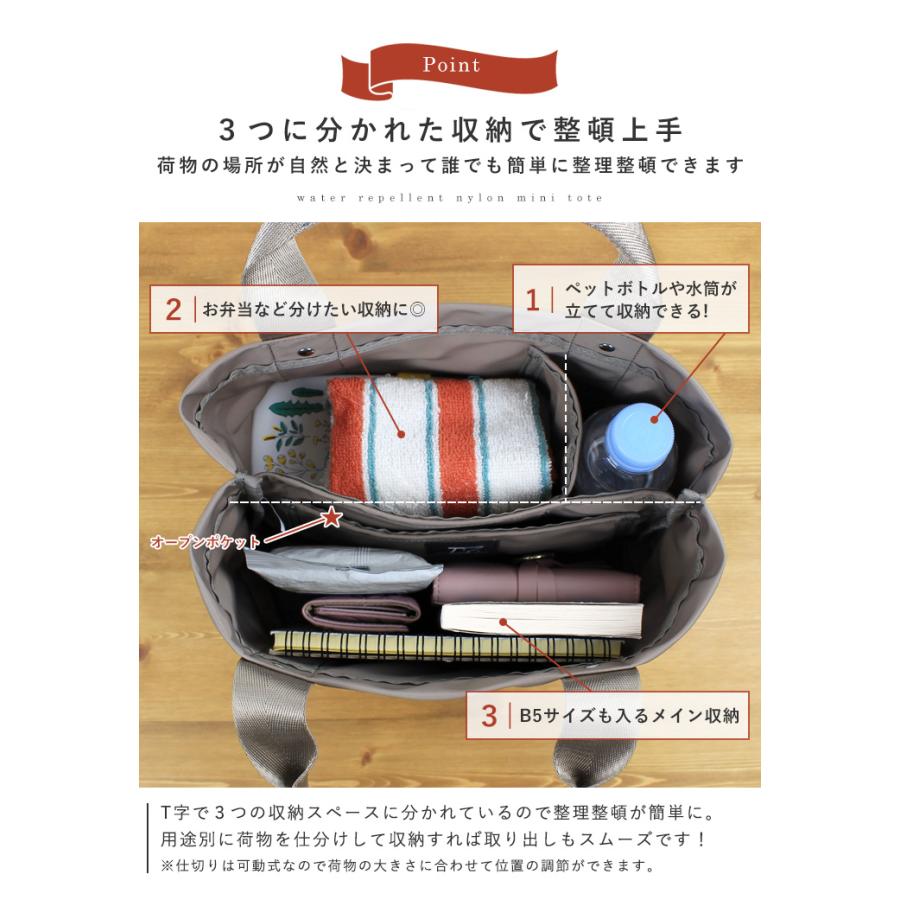 LIZDAYS ミニトートバッグ レディース 小さめ トートバッグ 仕切りトートバッグ 3つ仕切り 撥水 ナイロン 軽いバッグ ママバッグ ランチバッグ b5 マチ広