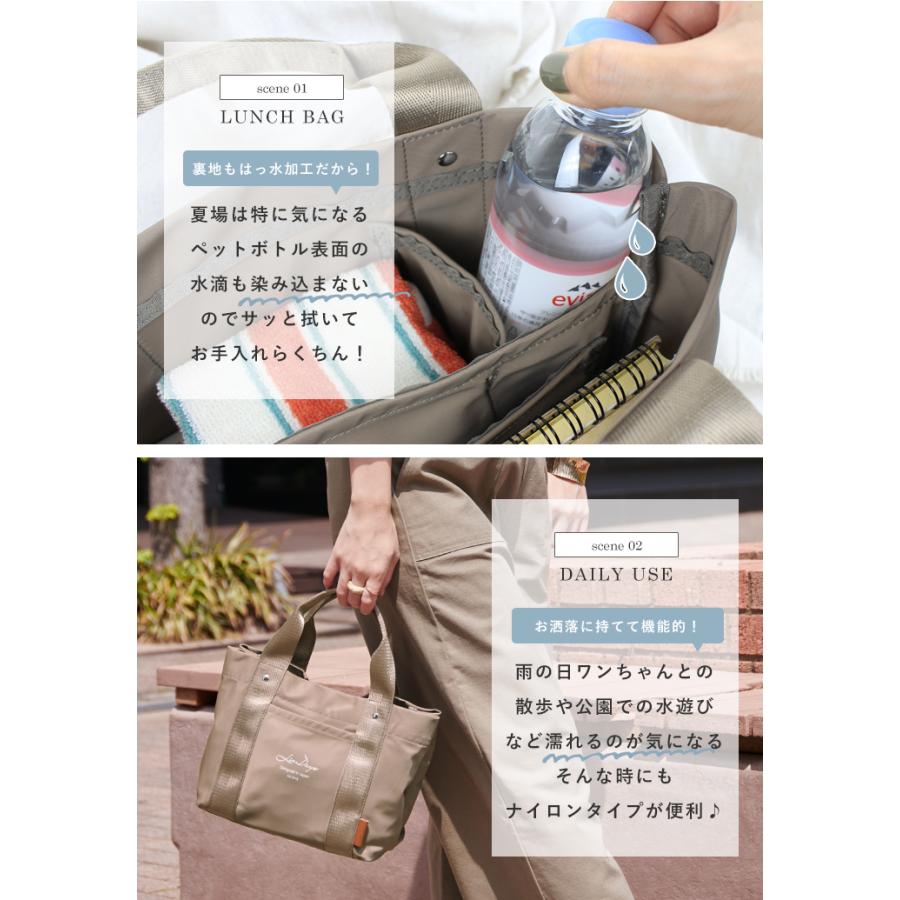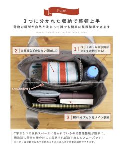 一度使ったらもう手放せない!とたくさんのお声をいただいている愛され仕切りトートから自信をもっておすすめできる「ナイロン」タイプ出来ました!大好評のこのシリーズに表裏両面はっ水加工を施し、実用的でありながら上品な光沢感がキャンバスタイプとはまた違った表情がよりお洒落で大人っぽいアイテムとなっております。ペットボトルや水筒が倒れない!立ててすっきり収納できるのがうれしい仕切り付きの仕様はバッグの中をいつでも綺麗に保てるので、通勤通学にもランチバッグにもさまざまなシーンで活躍してくれる万能アイテムです。