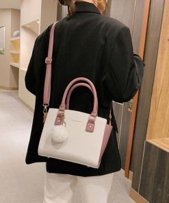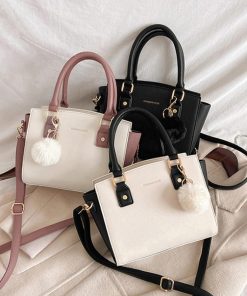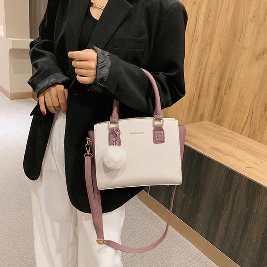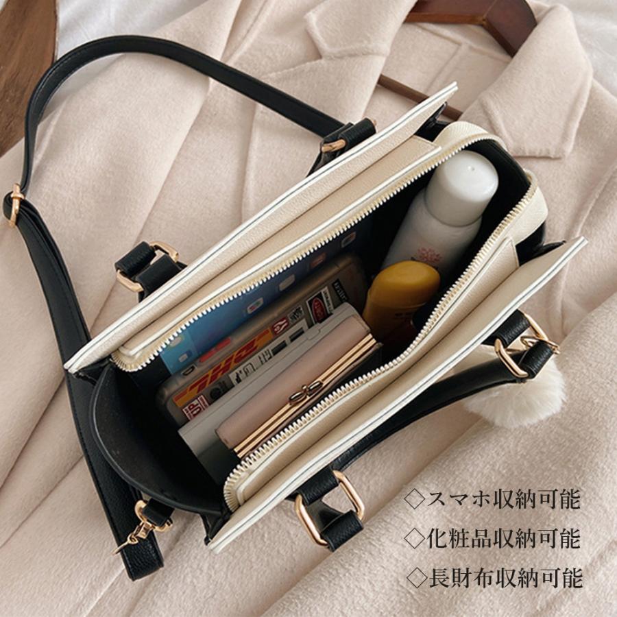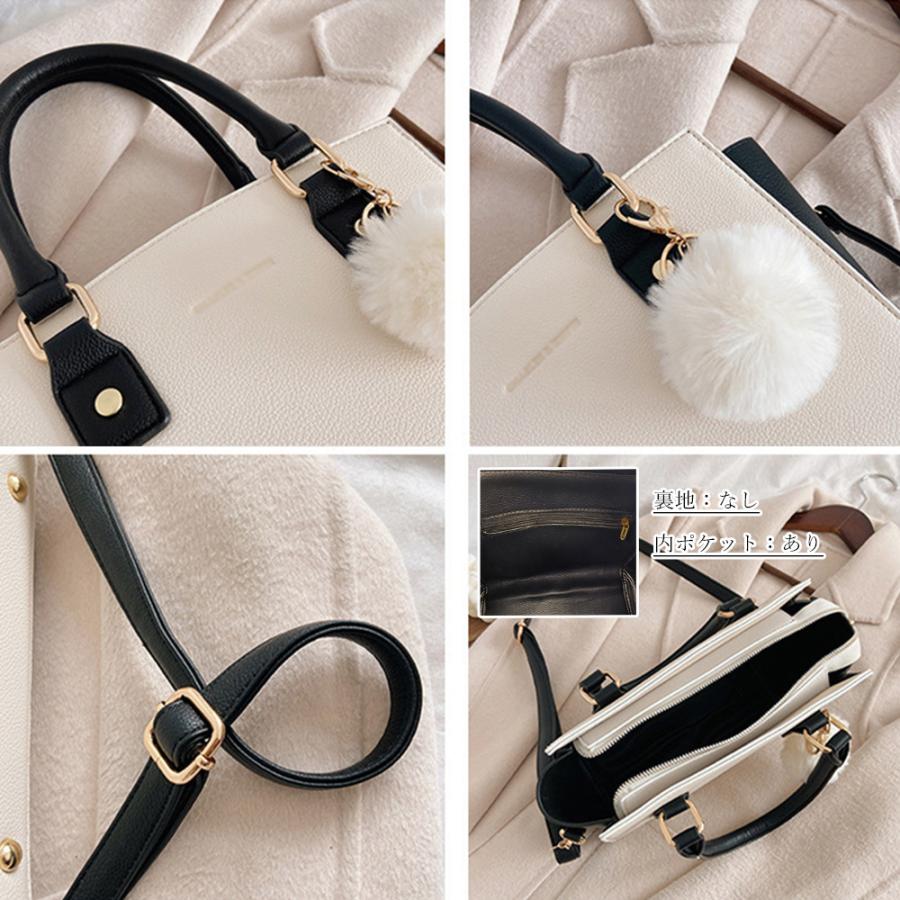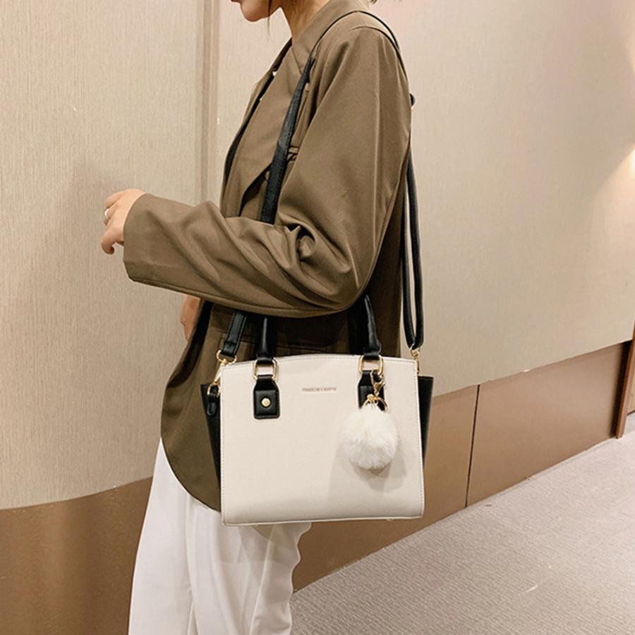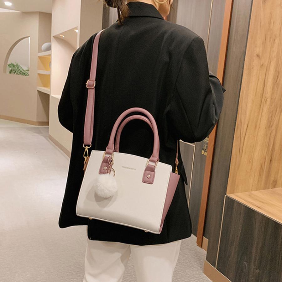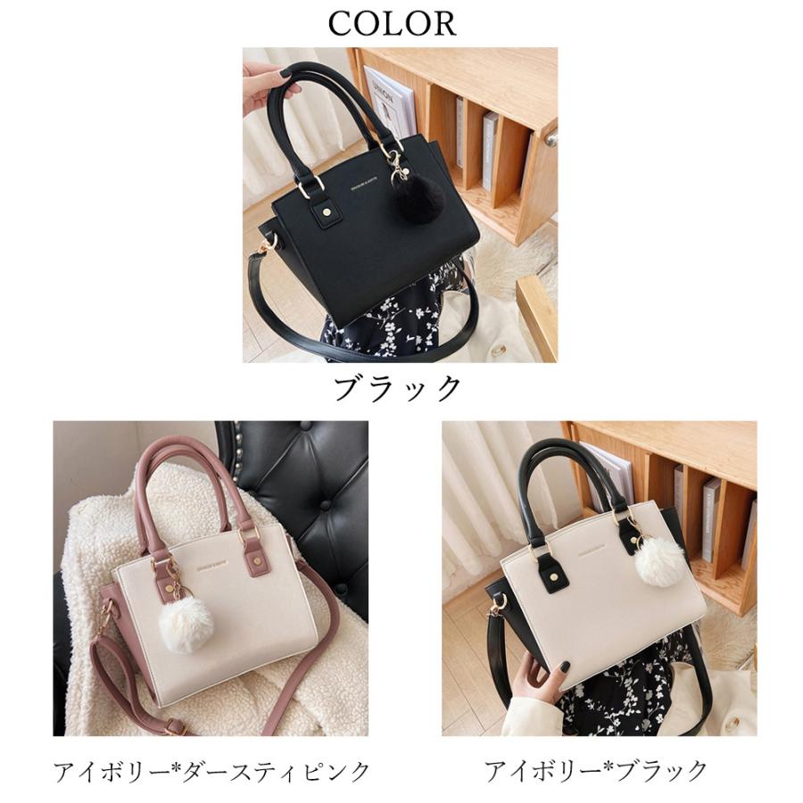 斜めがけバッグ ファーチャーム付き ミニハンドバッグ オフィス トートバッグ