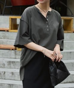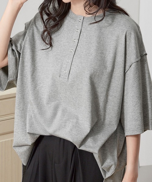 商品名:ヘンリーネック ドロップショルダー オーバーサイズ半袖Tシャツ