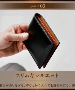 スクエアシルエットのコンパクトな二つ折り財布。