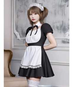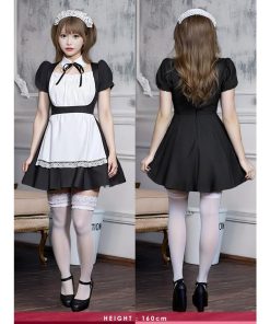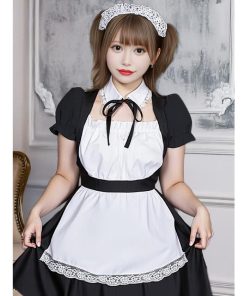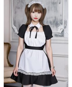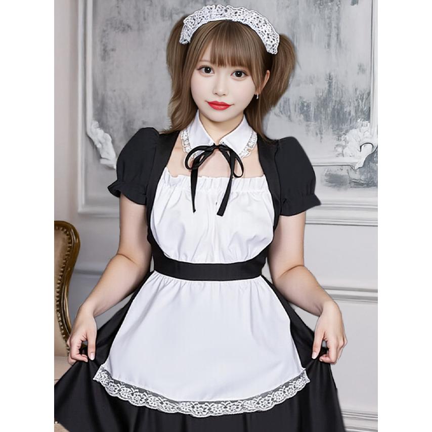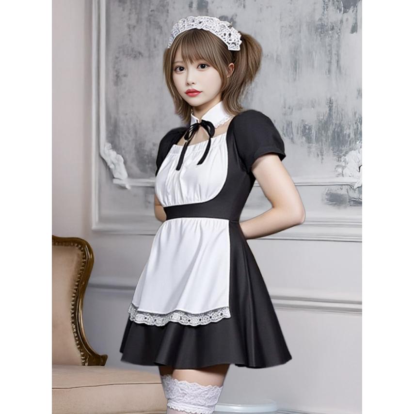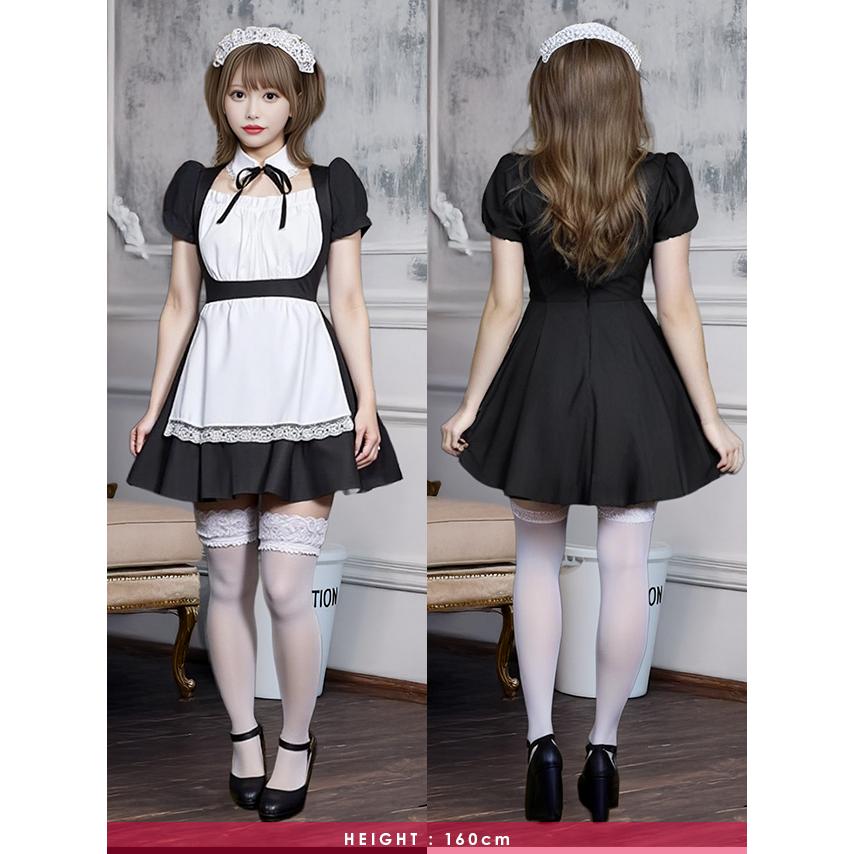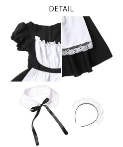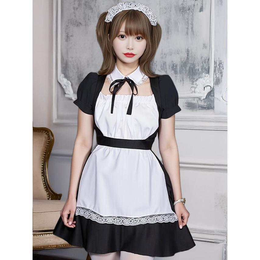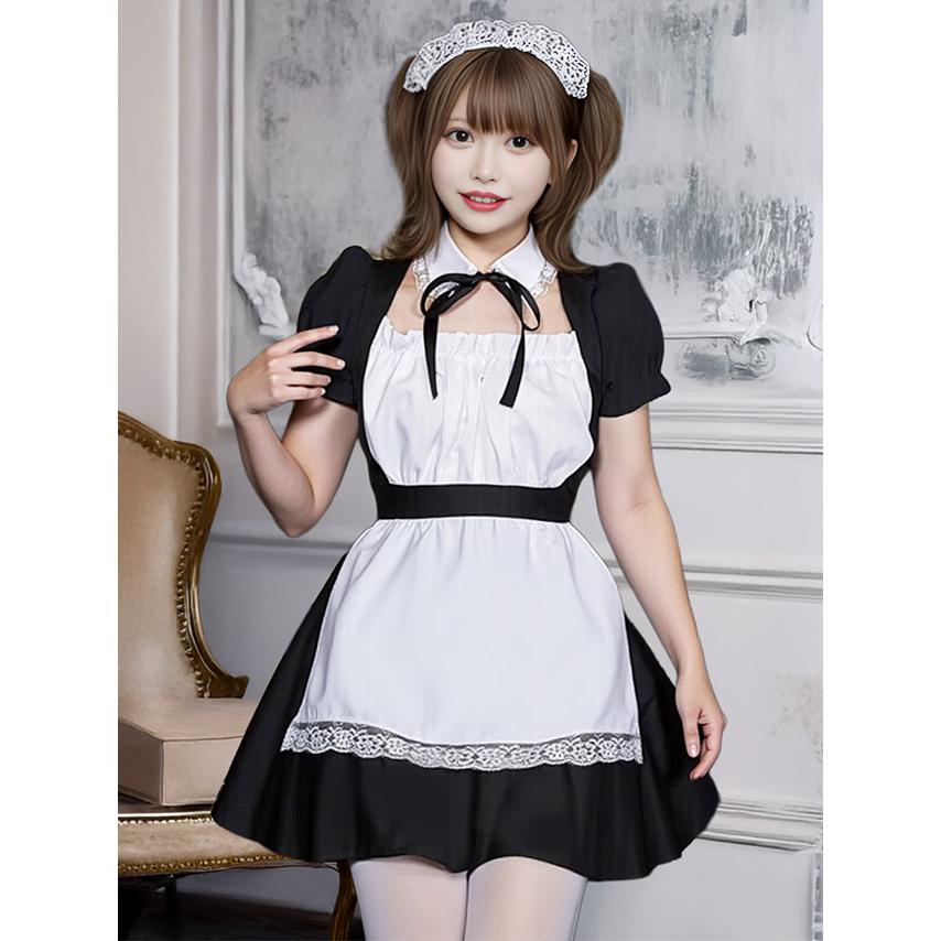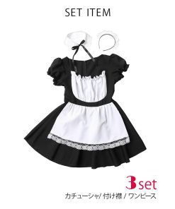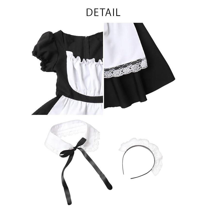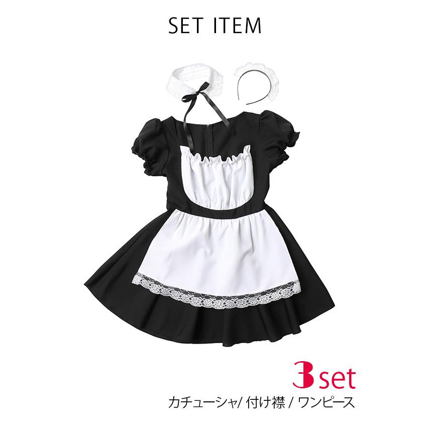 myMinette コスプレ パフスリーブ ロリータ 風体型カバー フレアスカートガーリー プチプラ フリルメイド 3点セット