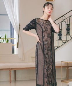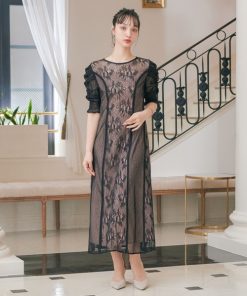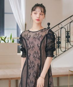 niana ドレス 総レースパネル切替バックリボンパーティードレス