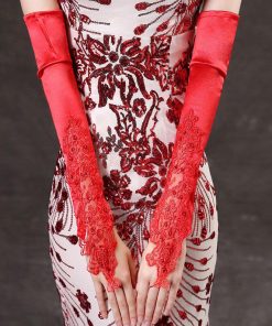 サテン調のお洒落なウェディンググローブです。