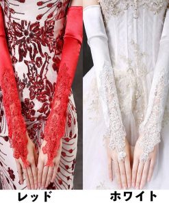 plusnao ウェディンググローブ ロンググローブ フィンガーレスグローブ ネイル手袋 指なし手袋 ウェディング手袋 ガントレット 長手袋 ロング サテン調 結婚式