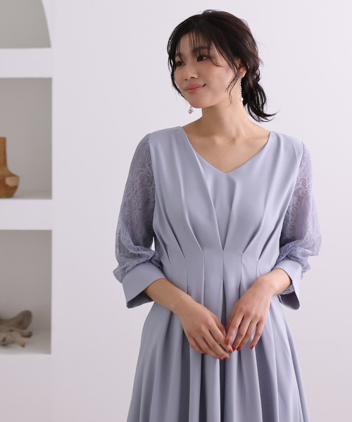 キーワード:ドレス フレア レース ロング 花柄 刺繍 七分袖 五分袖 無地 WEB限定 エレガント フェミニン 結婚式 結婚式二次会 秋 成人式 大人カジュアル 定番