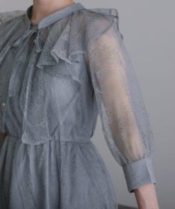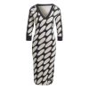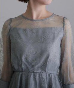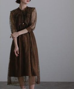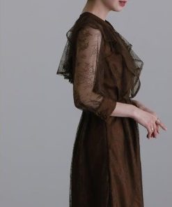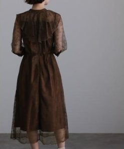 PourVous プールヴー ミモレ丈&袖ありフォーマルカフススリーブセレモニー結婚式パーティードレス ワンピース 20代 30代 40代 (ブラウン