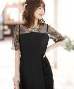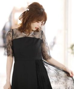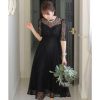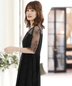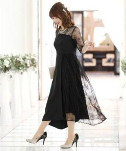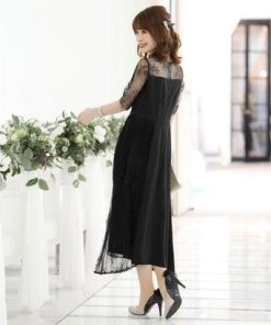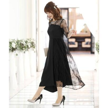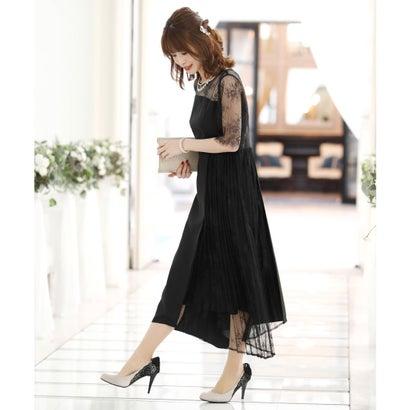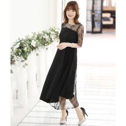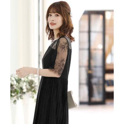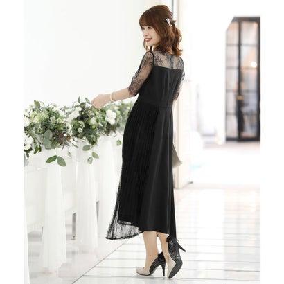 PourVous プールヴー 結婚式ワンピースドレスイレヘムプリーツ七分袖&ロングフォーマル パーティードレス 20代 30代 40代 (ブラック)