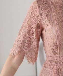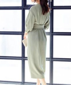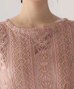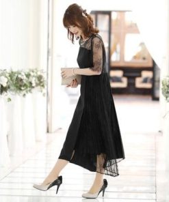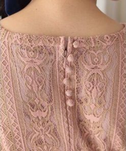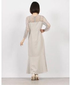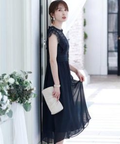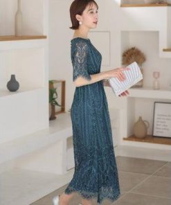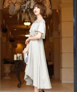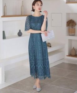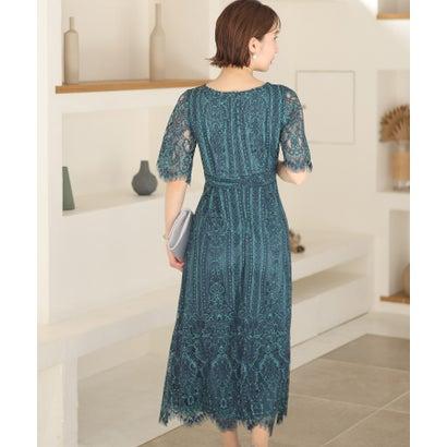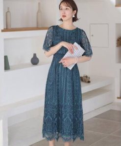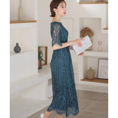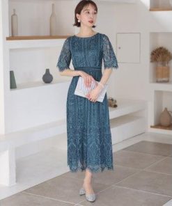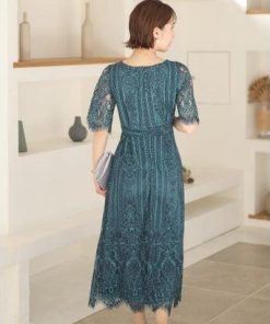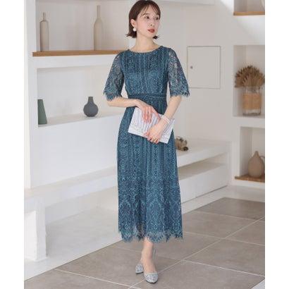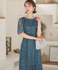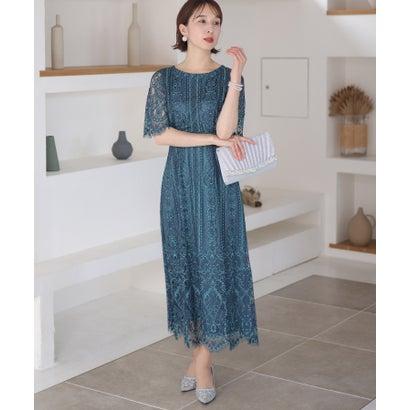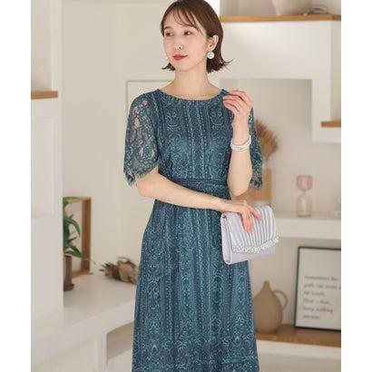 PourVous プールヴー 結婚式ワンピースドレススカラップ袖あり&ミモレ丈大きいサイズフォーマル パーティードレス 20代 30代 40代 (ネイ