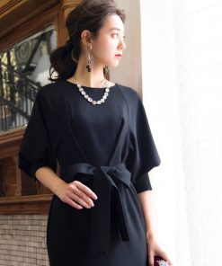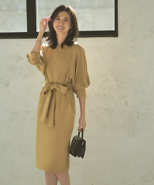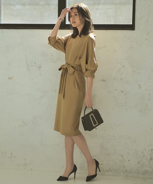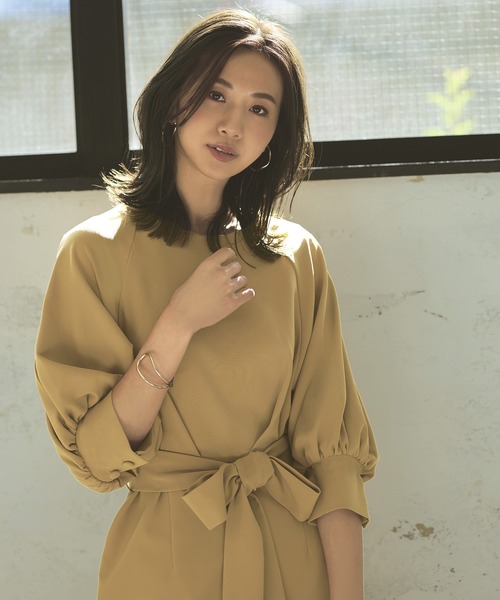 キーワード:ドレス 半袖 膝丈 無地 WEB限定 ZOZO限定 エレガント オケージョン キレイめ 結婚式二次会 婚活 秋 春 大人カジュアル