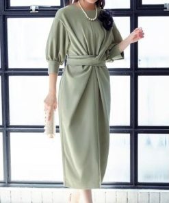 【ブランド商品番号】U837 KH / 【ブランド名】RUIRUE BOUTIQUE(ルイルエブティック) / 【色】グリーンミルクティー / 【素材】表地 : ポリエステル 96% ポリウレタン 4%、裏地 : ポリエステル 100% / 【原産国】中国