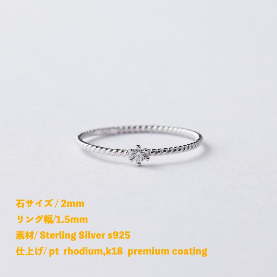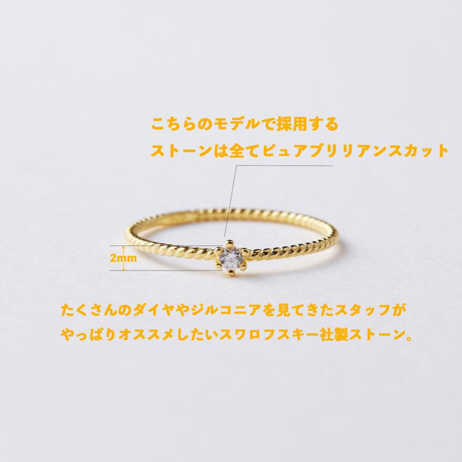 SWAROVSKI 指輪 レディース 細身 シンプル 一粒 スワロフスキー 50代 40代 30代 20代 普段使い ツイスト ダイヤ リング s925 18金 2mmサイズ