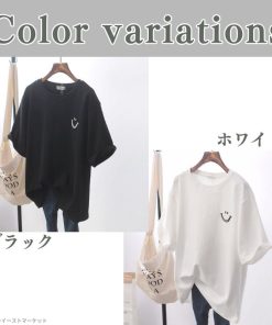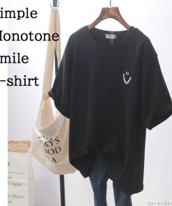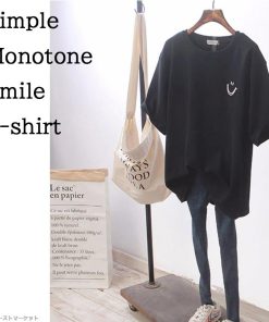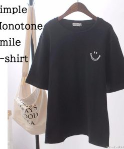 Tシャツ 半袖 レディース モノトーン シンプル 無地 ワンポイント 涼しい カジュアル おしゃれ かわいい トップス 着まわし 通勤 通学 スマイル