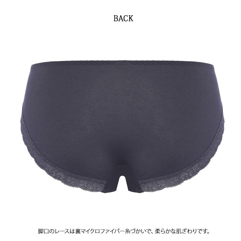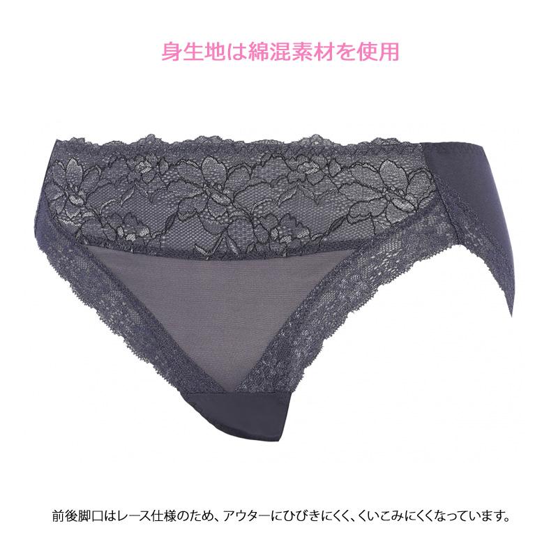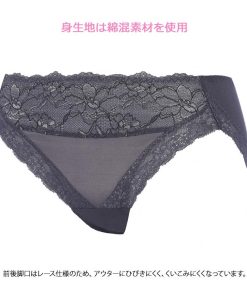 後ろ脚口レースは、裏マイクロファイバー糸づかいで柔らかな肌ざわりで、アウターにひびきにくいです。