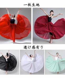 広がる スカート ロング丈 70cm 75cm 80cm 85cm 90cm 95cm 子供 大人 大きい裾 360° 540°720° 飄逸 シフォン 二枚生地 一枚生地 古典ダンス ベリー