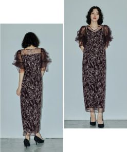 niana 結婚式 ワンピース パーティードレス チュール サテン プリーツ ロング丈 ミモレ丈 袖あり M L レース シアー ロング オケージョン 1.5次会 春 夏 秋 冬 二次会
