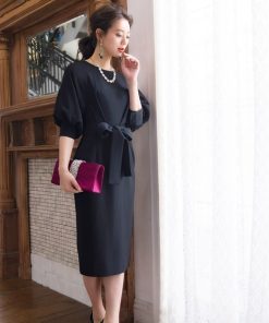 PourVous パーティードレス 結婚式 服装 ドレス フォーマル ワンピース 即日発送 韓国 ロング丈 体型カバー 顔合わせ お呼ばれ 20代 40代 大きいサイズ プチプラ 袖あり
